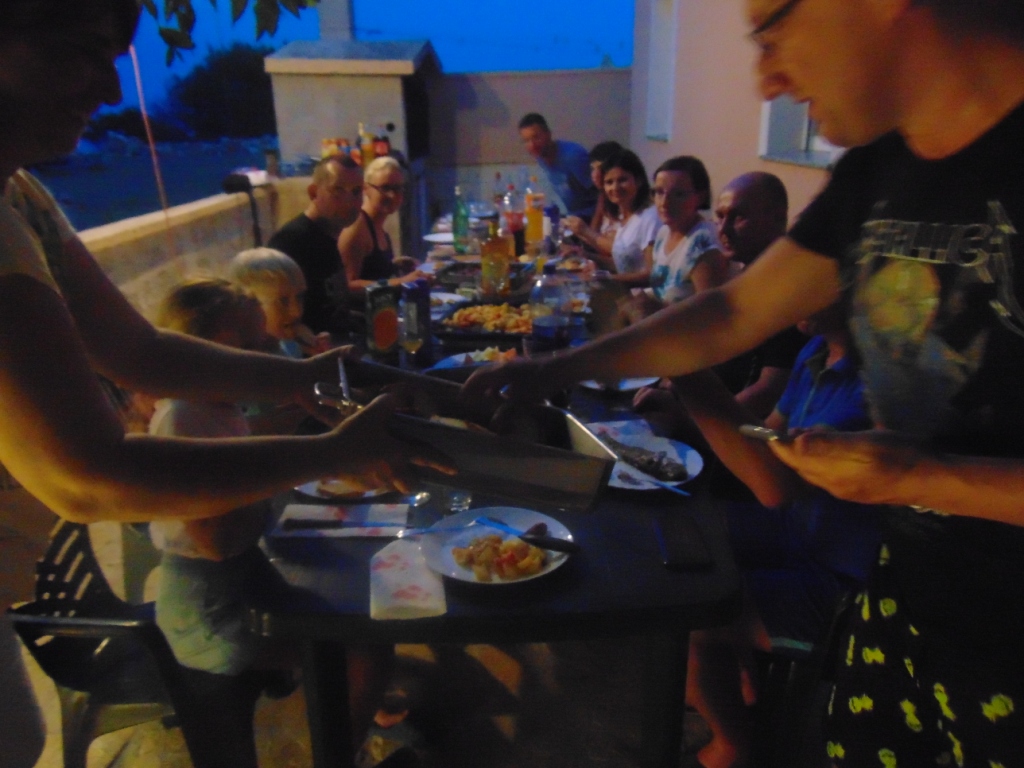 Svakih 10-tak dana organiziraju se, prema rasporedu i mogučnostima gostiju, zajednička druženja i većer uz pečenje – grill uz more.