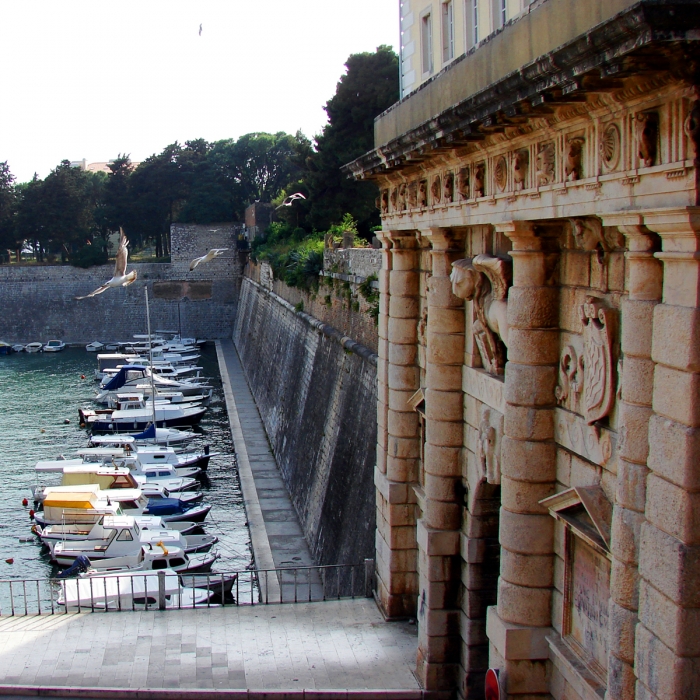 Mletački kaštel” u Zadru predstavlja sasvim specifičnu fortifikacijsku strukturu. Iako uklopljen u sustav gradskih zidina, već prvobitnom nakanom pri njegovoj gradnji bio je manje namijenjen obrani samoga grada, a više obrani od grada. Relativno brojni podaci o preuređivanju te utvrde nakon zadarske pobune, sredinom 14. st, a zatim i nakon ponovnog pada Zadra pod vlast Mletačke Republike početkom 15. stoljeća, svjedoče da je cjelokupan sustav utvrđivanja tog dijela gradskih fortifikacija prvenstveno služio u svrhu obrane mletačke vojne posade od eventualnih napada Zadrana, to jest kao sredstvo učvrščivanja i održavanja mletačke vlasti u buntovnom gradu. Posebnu pažnju privlači reljef krilatog lava, simbola Mletačke Republike, ugrađen u pročelje “Malog arsenala”, koji predstavlja jedan od najkvalitetnijih reljefa te vrste u Zadru, a moguće ga je datirati oko sredine 15. stoljeća.